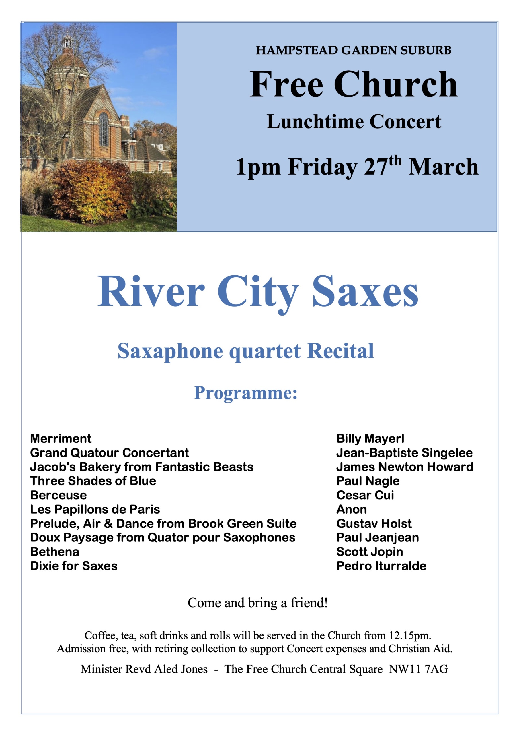 Hampstead Garden Suburb Free Church was founded in 1910 and is affiliated to the Baptist Union and a member of the United Reformed Church.Â