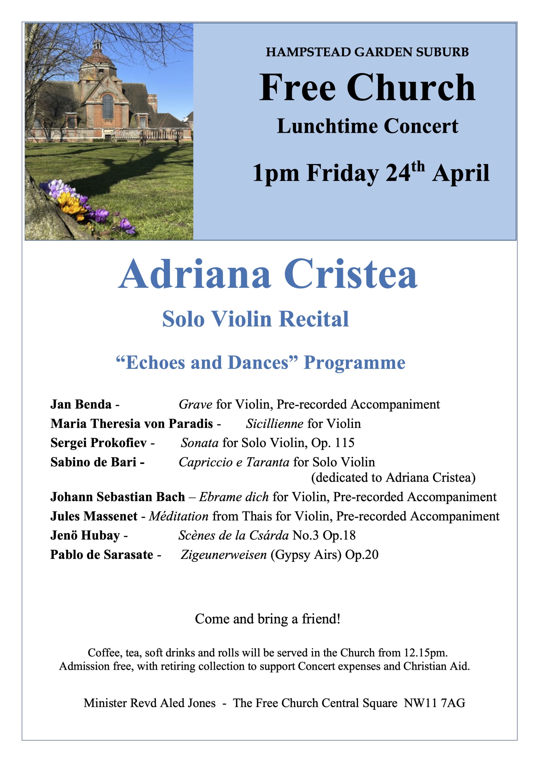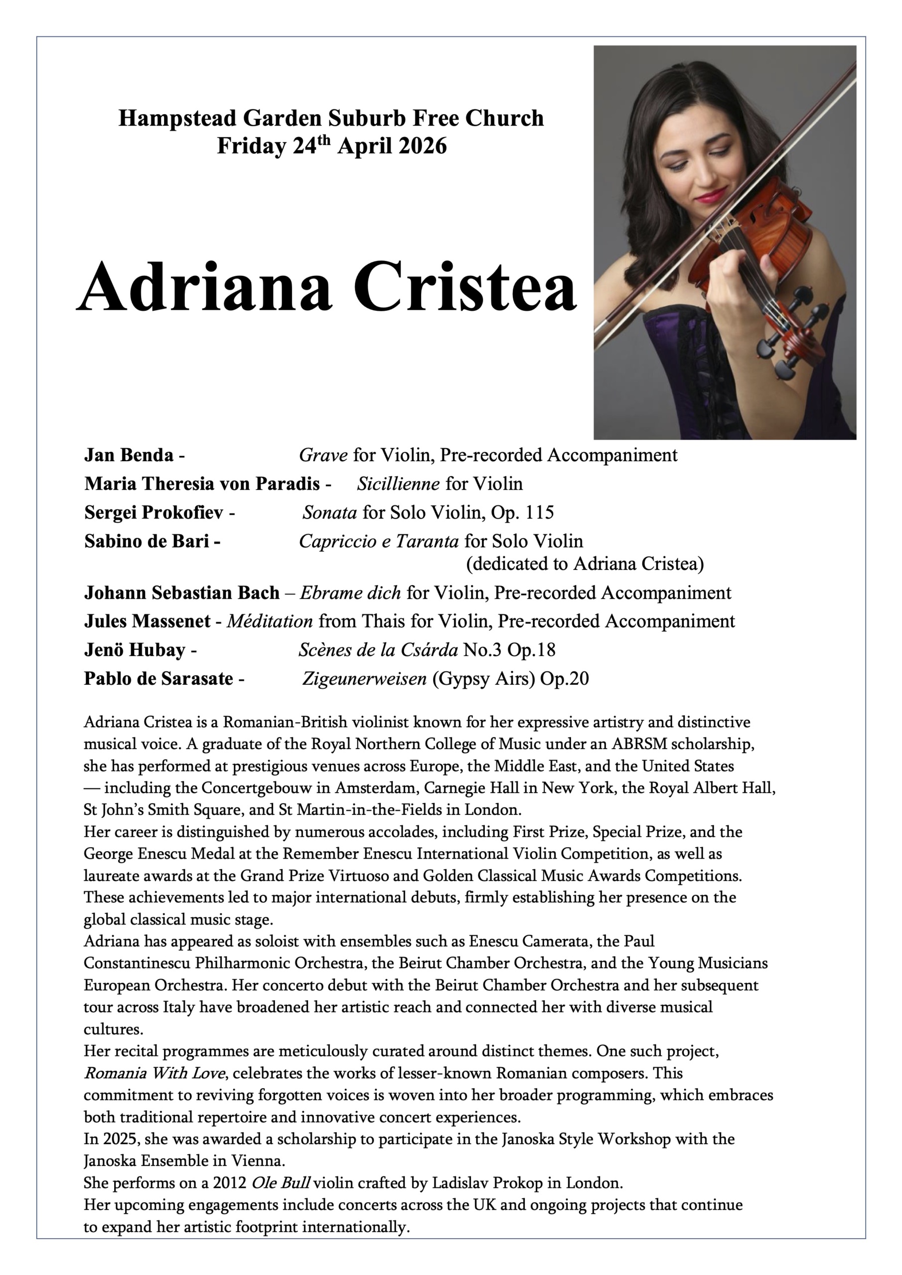 Hampstead Garden Suburb Free Church was founded in 1910 and is affiliated to the Baptist Union and a member of the United Reformed Church.Â
